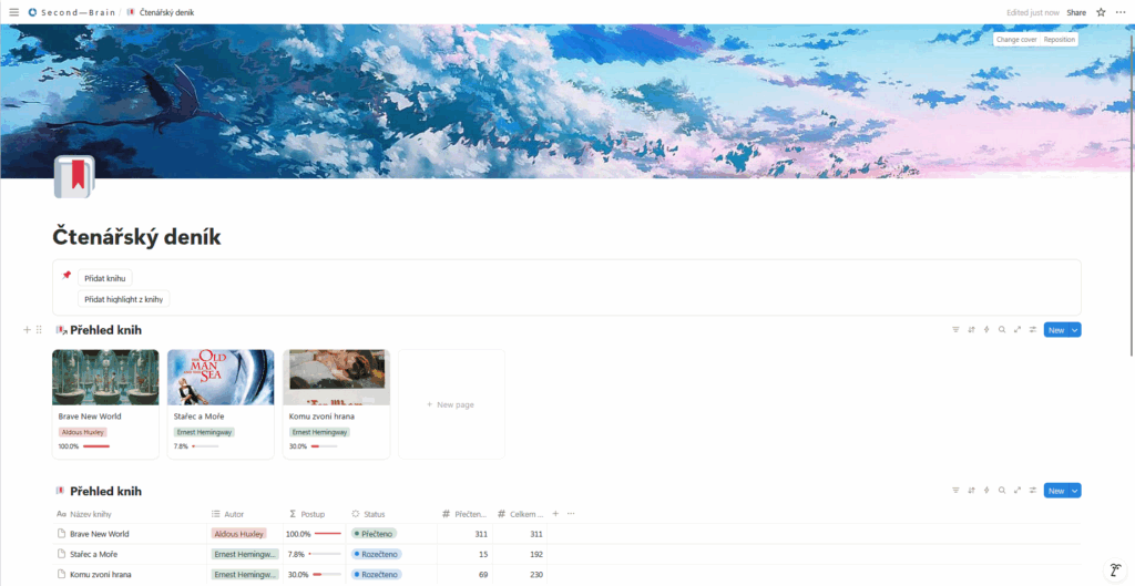 - Čtenářský deník — udržuj si přehled, které knihy jsi přečetl a co si jejich přečtením získal, včetně systému highlights 📚