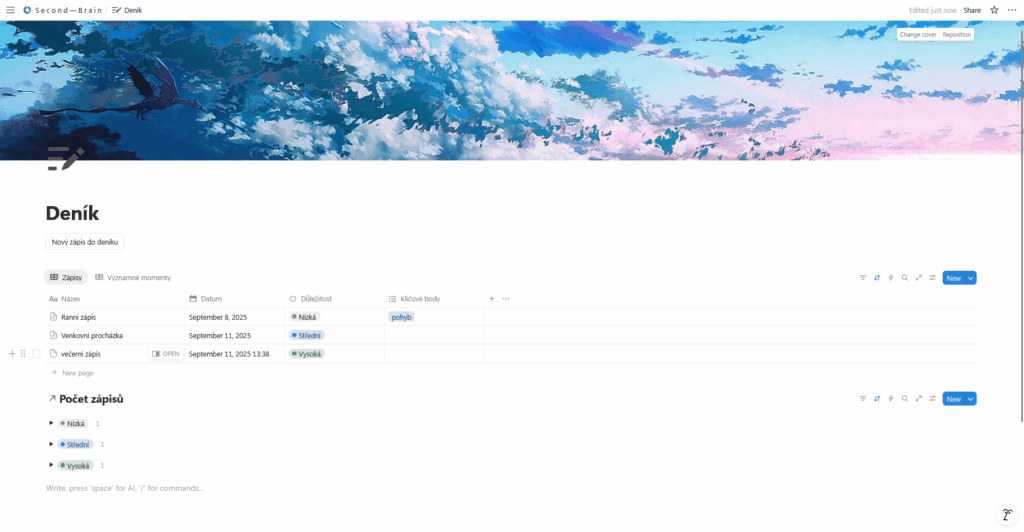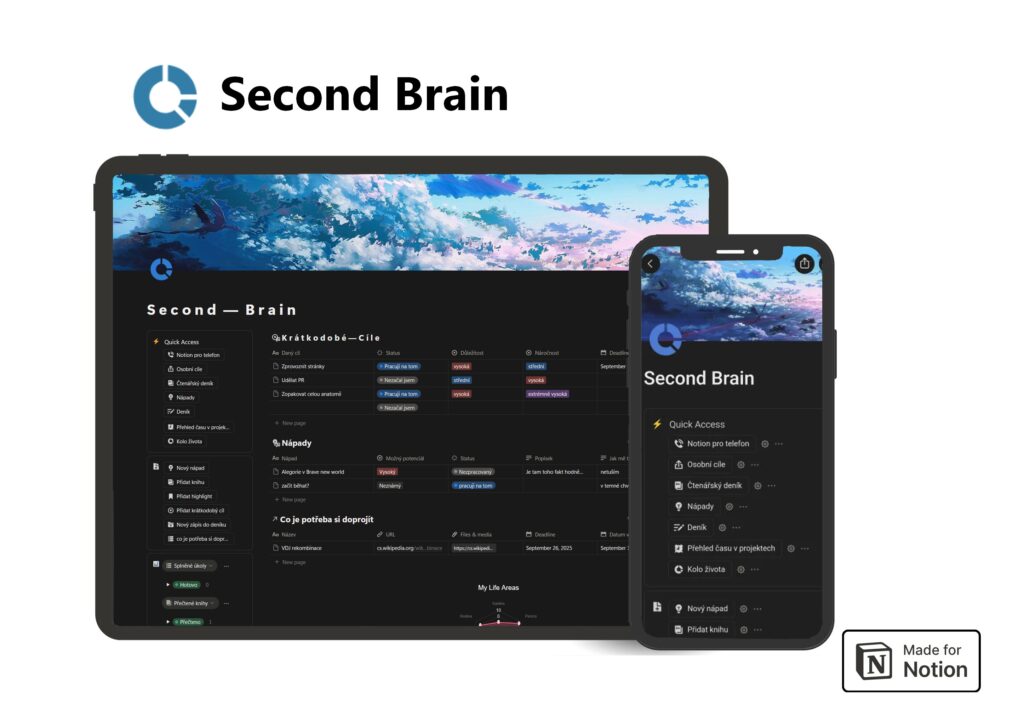 Second Brain je systém, kam si ukládáš poznámky, nápady, zdroje a úkoly, aby sis uvolnil hlavu na něco jiného a přitom na nic nezapomněl 🧠